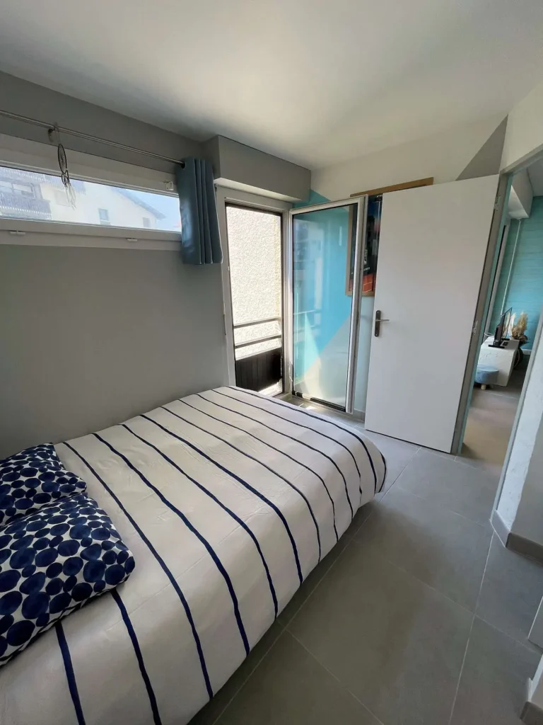 1 lit 140, rangements, porte-fenêtre Ouest. - 8 m² - Salle d'eau