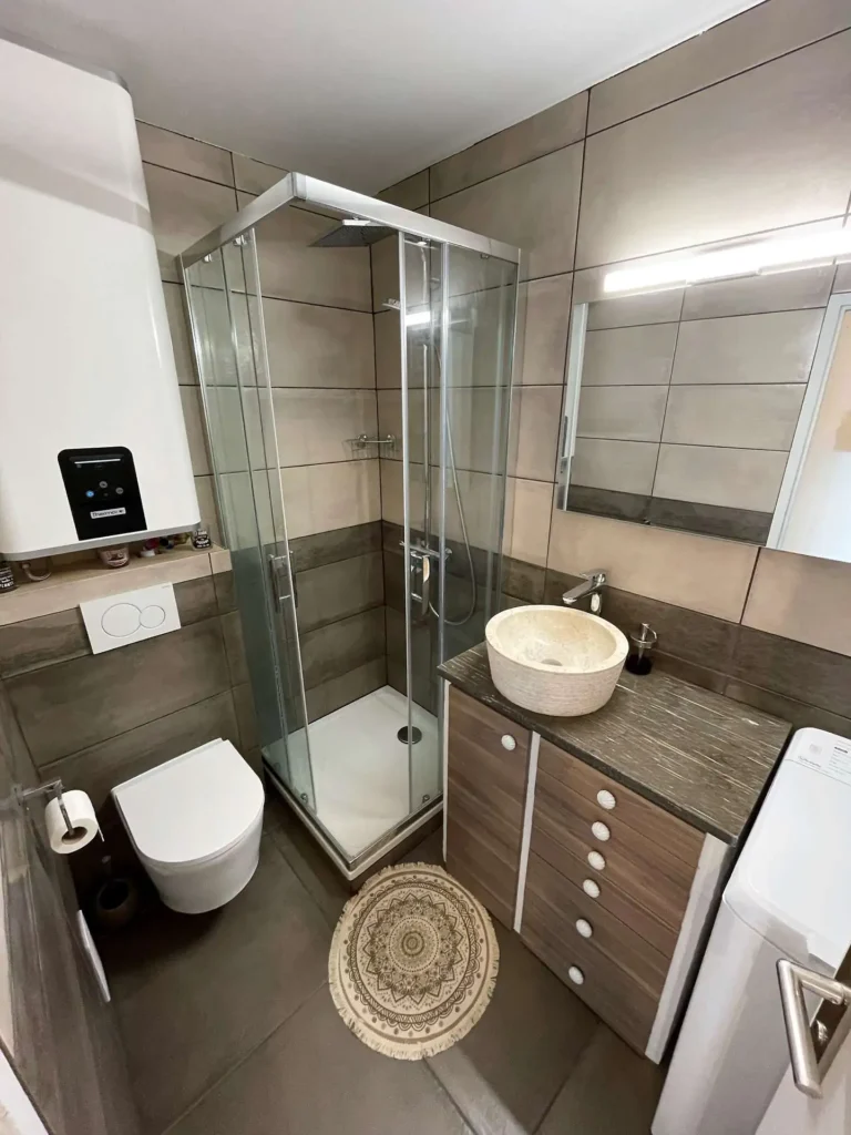 Douche ,vasque , placard de rangement, WC , lave-linge, radiateur électrique. - 3 m² - Loggia