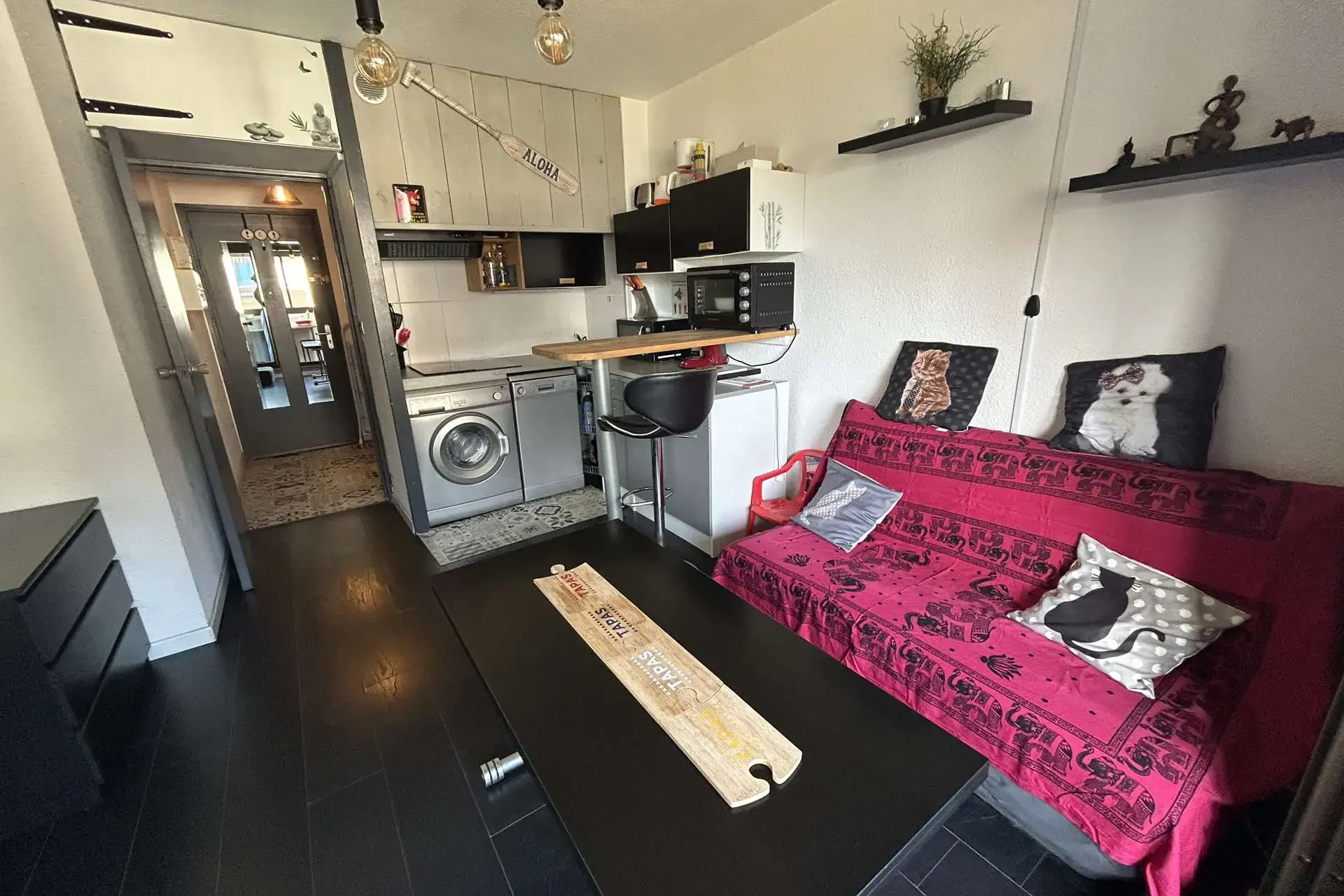 2 plaques, hotte, micro-ondes, lave-linge et lave -vaisselle - 0 m² - Salle d'eau independante