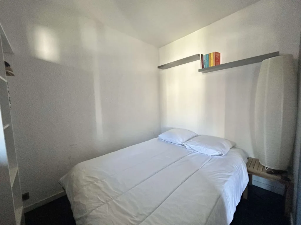 un lit 140 et TV murale - 6 m² - Séjour