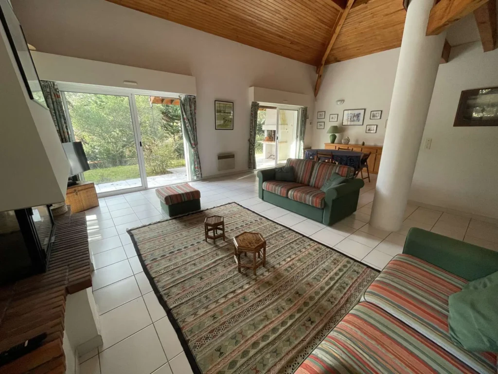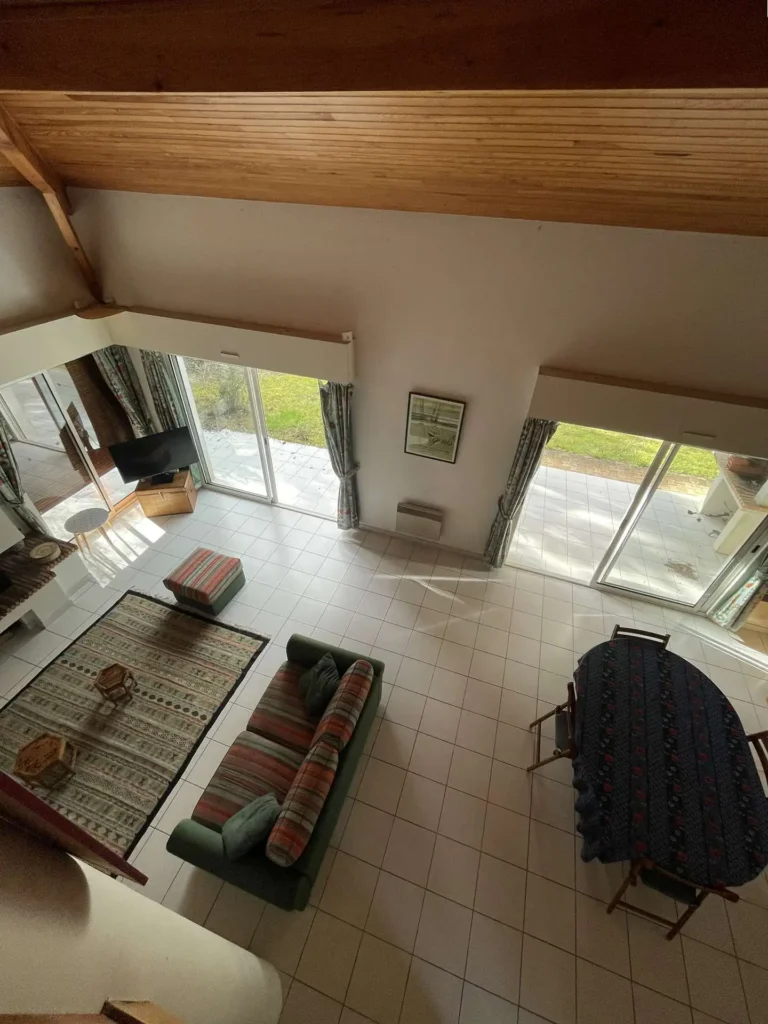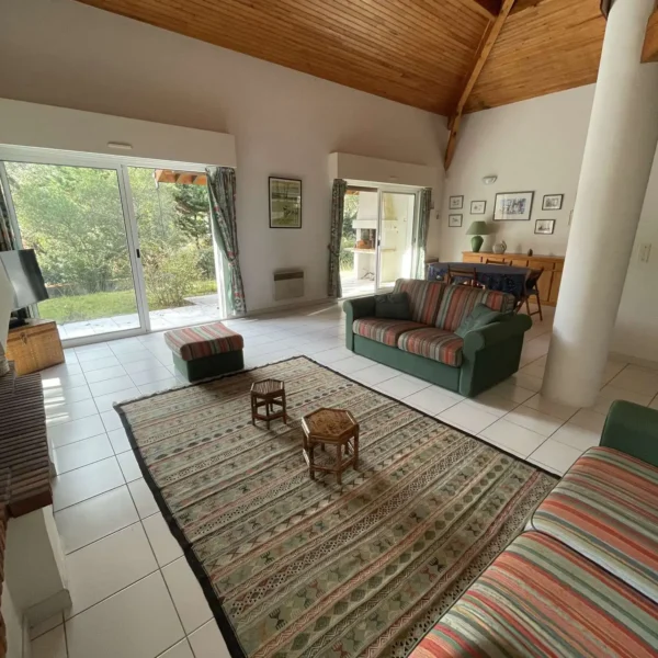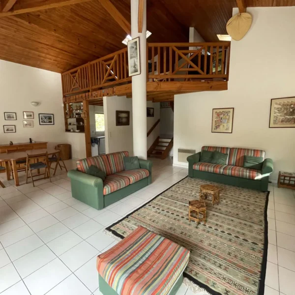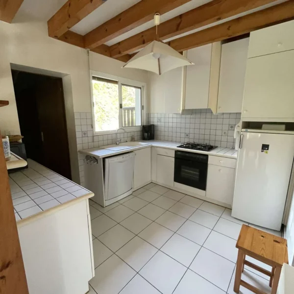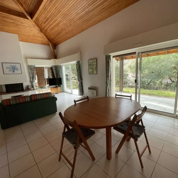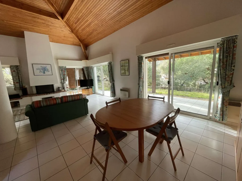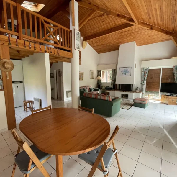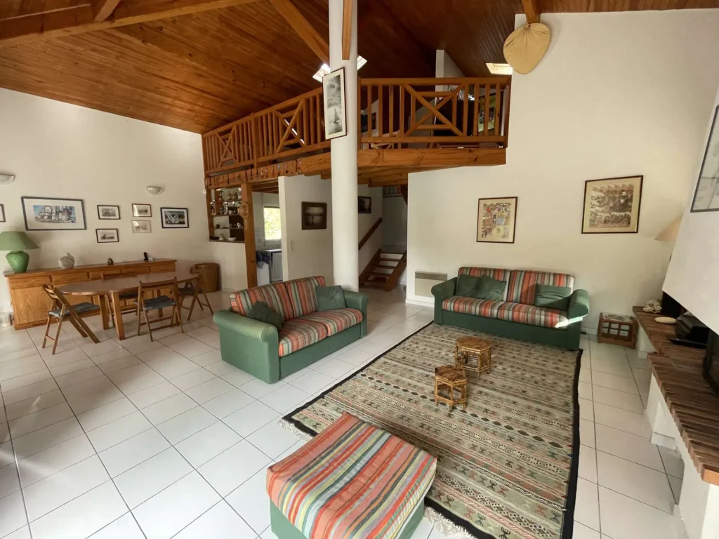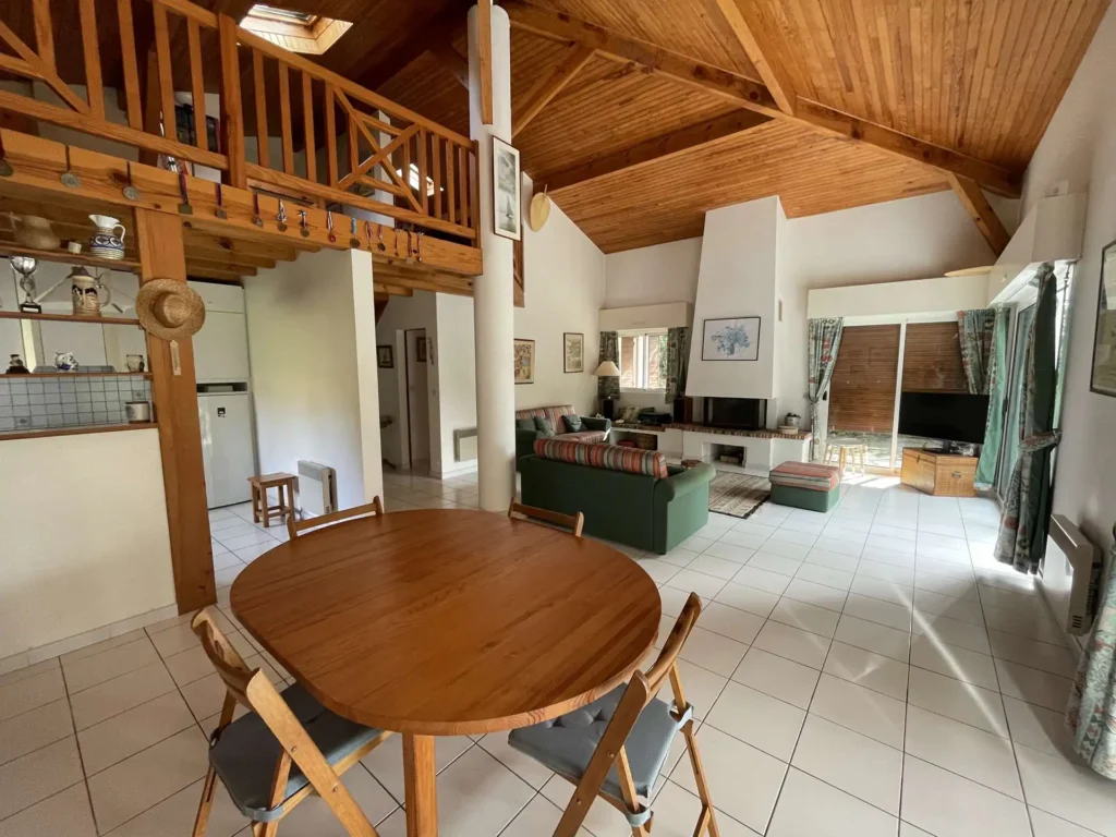 Réf 284 Seignosse Océan, située au fond d’une rue au calme, cette charmante maison se trouve à quelques minutes à pied de l’océan et des plages idéale pour des vacances en famille. Location du lundi au lundi. L’entrée se fait par un petit couloir qui dessert toutes les pièces. Le séjour, situé en bas de quelques marches, doté d'une belle hauteur sous plafond, est spacieux et lumineux grâce à ses deux grandes baies vitrées et ses fenêtres, offrant un espace convivial pour se détendre ou partager des moments en famille, coin salon avec canapé non convertible, tv écran plat, cheminée décorative ( non utilisable). La cuisine entièrement équipée (four, plaques gaz 4 feux, lave-vaisselle, micro ondes) dispose d’un accès direct au garage avec lave-linge, congélateur. La maison compte trois chambres : Chambre 1 : lit double 140 cm, avec placards de rangement, fenêtre coulissante Chambre 2 : lit double 140 cm, avec placards de rangement, fenêtre coulissante Chambre 3, plus à l'écart en prolongation du séjour : lit 160 cm, avec placards de rangement, porte fenêtre et fenêtre coulissante, coin douche et lavabo. Une mezzanine à l’étage, desservie par un escalier offre un espace idéal pour un coin lecture ou jeux pour les enfants. La salle de bain est équipée d’une baignoire et d’un lavabo, placard de rangement et double fenêtre. Wc indépendant. La terrasse exposée ouest permet de profiter des repas en extérieur et des longues soirées d’été. Le quartier résidentiel est calme , parfait pour des vacances en famille. Plages, pistes cyclables et commerces sont facilement accessibles à pied ou en vélo, pour profiter pleinement de l’océan et des activités locales. Animaux non admis. Linge de maison non fourni. Non adapté pour les personnes à mobilité réduite. Hors saison électricité et chauffage en supplément à régler au départ. Il est expressément interdit de recharger tout véhicule électrique dans le logement ou sur la propriété.