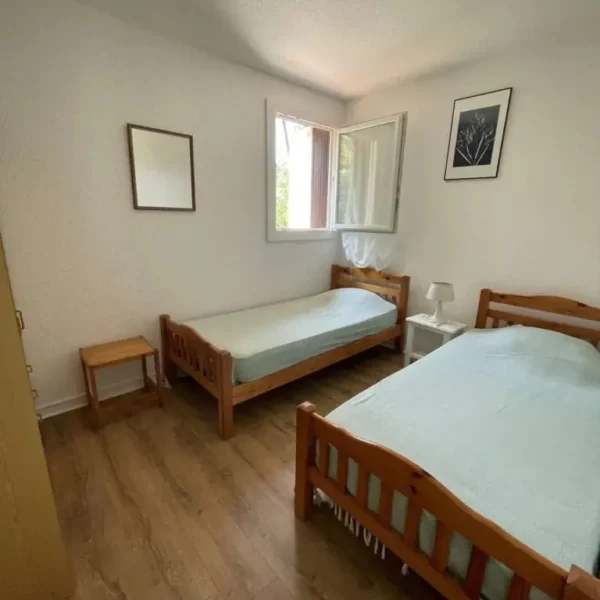 2 lits 1 personne, armoire de rangement fenêtre - 8 m² - Chambre 2